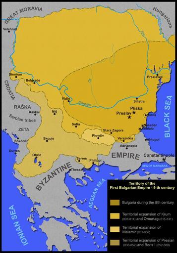 | Keywords: Territory of the First Bulgarian Empire - 9 th century.png en Territory of the First Bulgarian Empire - 9 th century bg Те ито ия на Пъ вото бълга ско ца ство п ез 9 век <br/><br/>Based on map Засилване и те ито иално азши ение на Славянобълга ската дъ жава п ез ХІ в in atlas Атлас по исто ия на Бълга ия за с едните училища Ка тог афия София 1990 г own Kandi 2009-03-26 Maps of the history of Bulgaria in the Middle Ages Maps of the history of Romania in the Middle Ages Maps showing 9th-century history |