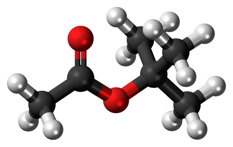 Keywords: Tert-Butyl acetate 3D ball.png Ball-and-stick model of the tert-butyl acetate molecule the ester of tert-butanol and acetic acid Colour code 505050 Carbon C black<br> F0F0F0 Hydrogen H white<br> F51E1E Oxygen O red<br> 2011-06-13 own DS Visualizer Jynto talk Space-filling version cc-zero tert-butyl acetate Images by Jynto |