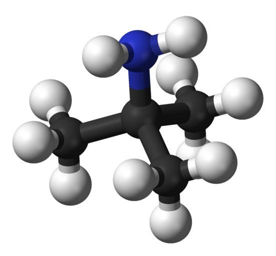 Keywords: Tert-butylamine-3D-balls.png Ball and stick model of the Tert-butylamine molecule Derivative of File Tert-butanol-3D-balls png 2010-02-01 Ben Mills and Jynto Tert-butylamine Images by Jynto