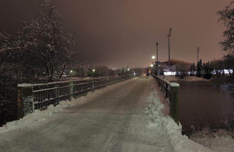 | Keywords: Tervaporvarin sillat Oulu 20151211.JPG en A bicycle and pedestrian bridge between the Linnansaari and Raatti islands in Oulu fi Linnansaaren ja Raatinsaaren välinen kevyenliiketeensilta Oulussa 2015-12-11 own Estormiz other versions 65 017661666667 25 465635 cc-zero 2015 in Oulu Bridges in Oulu at night December 2015 in Finland Taken with Canon EOS 6D Finland photographs taken on 2015-12-11 Winter 2015-2016 in Finland Winter in Oulu Bridges in Finland photographed in 2015 Bridges in Finland in snow Ämmänväylä Pedestrian and Bicycle Bridge |
