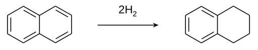 MAKE A MEME View Large Image Tetralin synthesis 01.svg en Synthesis of tetralin Hydrogenation of naphthaline de Synthese von Tetralin Hydrierung von Naphthalin own Steffen 962 2011-12-06 PD-chem Tetralin Reactions of naphthalene Hydrogenation reactions Cc-zero