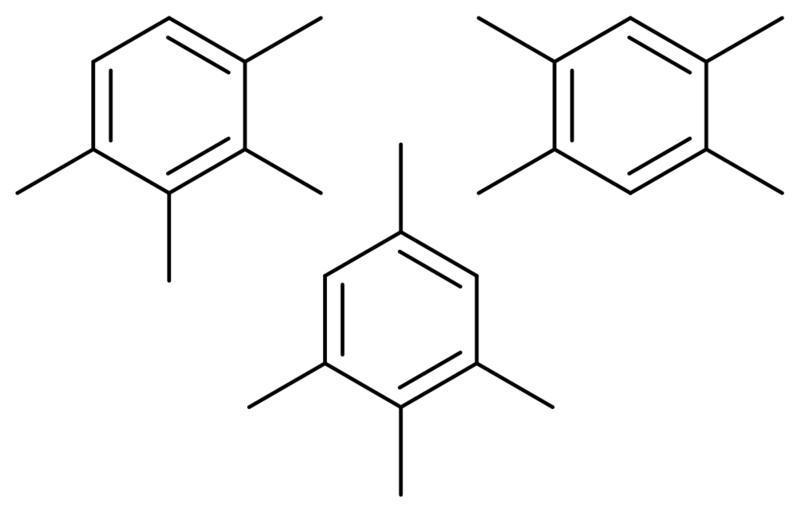 Keywords: Tetramethylbenzole.svg Tetramethylbenzole Own 2008-02-18 Felix Hennersdorf PD-ineligible Tetramethylbenzenes Structural isomerism