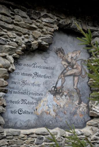 Keywords: Teufelsmühle, Fresko.JPG Fresko von Lydia Reitmeir mit Spruch an der Teufelsmühle own 2011-11-01 Haneburger FoP-Austria 47 252802 11 485082 region AT_heading N Images by Haneburger Teufelsmühle Aldrans The Devil Frescos in Tyrol state