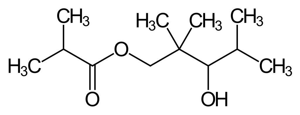 Keywords: Texanol.svg de 2 2 4-Trimethyl-1 3-pentandiolmonoisobutyrat own Roland chem 2015-09-05 Carboxylate esters Secondary alcohols Cc-zero