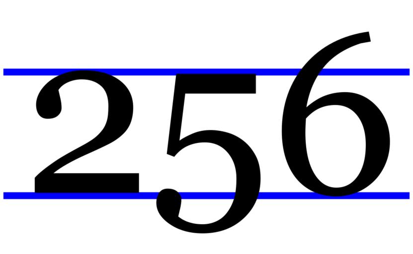 Keywords: Text figures 256.svg 256 in text figures with baseline and x-height line Traced from Image TextFigs256 png Georgia font used for digits converted to path 2007-02-20 User Random832 Image TextFigs256 png - non-vector Text figures 256 number