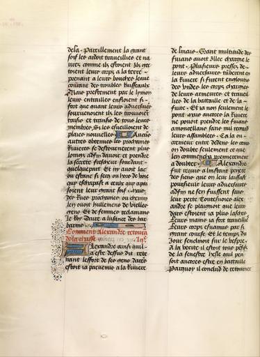 | Keywords: Text Page - Google Art Project (6901531).jpg  None 430703 Unknown /collection/the-j-paul-getty-museum/artwork/text-page-unknown/6901531/ Unknown illuminator /collection/the-j-paul-getty-museum/ The J Paul Getty Museum 343005 http //www getty edu/museum 3/13/2012 12 16 10 AM /collection/the-j-paul-getty-museum/artwork/text-page-unknown/6901531/ 1470 about 1470 - 1475 Tempera colors gold leaf gold paint and ink on parchment 432 6901531 True 1475 3/25/2012 3 20 37 PM lido getty edu-gm-obj145449 http //www getty edu/art/gettyguide/artObjectDetails artobj 145449 http //www getty edu/legal/copyright html Folio 1470 1480 Lille written France Creation w330 x h432 cm about 1470 - 1475 False 0 73046875 Part text-page-unknown Text Page t 330 Tempera colors gold leaf gold paint and ink on parchment http //www getty edu/legal/copyright html special url_id lwEGFxWVdWClgw PD-old-100 Google Art Project works by unknown artist MS LUDWIG XV 8 Getty museum - Livre des fais d'Alexandre le grant |