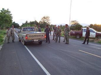 Keywords: TH Police 6.jpg Thai Police officers - Huaikhot Uthaithani Thailand Own 2005-06-25 18 31 01 Love Krittaya Police officers of Thailand Toyota HiLux N30/N40 Roads in central Thailand Road blocking by law enforcement agencies