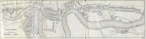 Keywords: Thames river 1882.jpg River Thames with the Docks from Woolwich to the Tower from A Dictionary Practical Theoretical and Historical of Commerce and Commercial Navigation by J R M'Culloch Longmans Green and Co London 1882 This map shows all of the main upstream London docks except the w King George V Dock which had not been built It was to be located to the south of the Royal Albert Dock which is the large dock at the far right Credit given on image to Edward Weller in respect of the engraving who according to an entry at http //www jpmaps co uk/cartographers/initial/W died in 1884 making this image PD as claimed Sourced from University of Texas public domain map collection http //www lib utexas edu/maps/historical/history_europe html PD-old 1882 in England London Thames Old maps of London 1882 Docks in London London Port of London Old maps of the Docks of London |