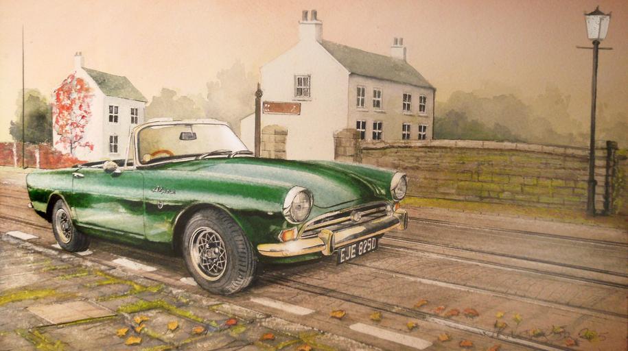 Keywords: sunbeam rapier classic british cars autumn sunshine trams tracks tramstracks bridge canal houses leaves www.artpistol.co.uk/art-gallery/artist/586 www.artpistol.co.uk/art-gallery/artist/586