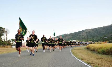 | Keywords: The 525th Military Police Battalion sunrise run 111213-N-RF645-300.jpg  en Commanding oficer of the 525th Military Police Battalion Lt Col Christopher Wynder leads his soldiers on a battalion run at sunrise Assigned to Joint Task Force Guantanamo the 525th Military Police Battalion's mission is to provide command control and operational support to high risk detention operations at Guantanamo Bay Cuba in support of the Joint Detention Group 2011-12-13 Petty Officer 2nd Class Kilho Park https //www dvidshub net/image/498888 111213-N-RF645-300 2011-12-13 14 22 GUANTANAMO BAY CU PD-USGov-Military-Navy Joint Task Force Guantanamo Guantanamo Bay Images from DoD uploaded by Fæ 525th Military Police Battalion United States |