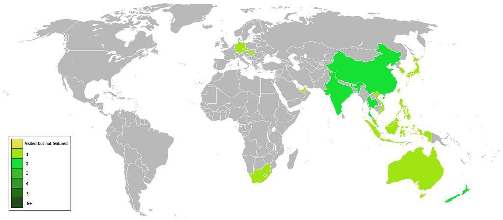 Keywords: The Amazing Race Asia – countries visited v1.png This is map showing countries that been visited in the show w The Amazing Race Asia Those countries are in green Own 2007-12-20 DanielTAR The Amazing Race Asia maps