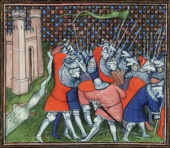 Keywords: The battle of Nogent.jpg en Jean Froissart Chroniques Vol I The battle of Nogent Place of origin date Paris Virgil Master illuminator ; c 1410 Material Vellum ff 382 385x288 243x187 mm 42 lines littera cursiva Binding 18th-century brown leather; gilt; with coat of arms of Stadholder William V Decoration 1 two-column miniature 170x180 mm ; 29 column miniatures 115/65x95/80 mm ; 1 historiated initial 45x50 mm ; decorated initials with border decoration ff 1r 24r 36r 62r 74v etc Provenance Louis de Luxemburg conn štable de France d 1475; signature erased ; by descent to his granddaughter Françoise de Luxembourg and her husband Philip of Cleves d 1528; coat of arms with label over erasure; signature ; purchased in 1531 from Philip's estate by HenriIII Count of Nassau d 1538 ; by descent to the Princes of Orange-Nassau the later Stadholders at The Hague; carried off in 1795 to Paris by the French and restituted to the Koninklijke Bibliotheek in 1816 http //www kb nl/manuscripts/show/manuscript/72+A+25 Jean Froissart Chroniques Vol I Virgil Master illuminator ca 1410 Chroniques de Froissart vol 1 - Den Haag KB 72 A 25 c 1410 Hundred Years' War PD-old-100 |