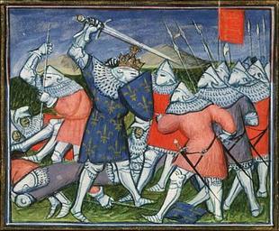 Keywords: The battle of Poitiers.jpg en Jean Froissart Chroniques Vol I The battle of Poitiers Place of origin date Paris Virgil Master illuminator ; c 1410 Material Vellum ff 382 385x288 243x187 mm 42 lines littera cursiva Binding 18th-century brown leather; gilt; with coat of arms of Stadholder William V Decoration 1 two-column miniature 170x180 mm ; 29 column miniatures 115/65x95/80 mm ; 1 historiated initial 45x50 mm ; decorated initials with border decoration ff 1r 24r 36r 62r 74v etc Provenance Louis de Luxemburg conn štable de France d 1475; signature erased ; by descent to his granddaughter Françoise de Luxembourg and her husband Philip of Cleves d 1528; coat of arms with label over erasure; signature ; purchased in 1531 from Philip ™s estate by HenriIII Count of Nassau d 1538 ; by descent to the Princes of Orange-Nassau the later Stadholders at The Hague; carried off in 1795 to Paris by the French and restituted to the Koninklijke Bibliotheek in 1816 http //www kb nl/manuscripts/show/manuscript/72+A+25 Jean Froissart Chroniques Vol I Virgil Master illuminator ca 1410 Battle of Poitiers 1356 Chroniques de Froissart vol 1 - Den Haag KB 72 A 25 c 1410 Medieval miniatures of battles Hundred Years' War PD-old-100 |