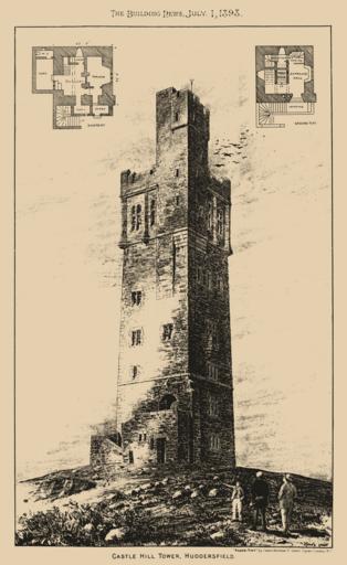| Keywords: 1898 castle hill castlehill victoria tower victoriatower jubilee tower jubileetower Illustration of Isaac Jones' winning design for the Jubilee Tower, Castle Hill. The accompanying article is: CASTLE HILL TOWER, HUDDERSFIELD. On Saturday last, the 25th inst., the foundation-stone of this building was laid by Mr. J. Frecheville Ramsden, son of Sir J.W. Ramsden, Bart., Lord of the Manor. The tower is being built as a memorial of the Queen's Jubilee. The site on Castle Hill is at once commanding and historical ; it is two miles out of the town, and forms a prominent feature in the landscape, within a radius of twenty or thirty miles. In the County Histories mention is made of a castle erected on the hill in the reign of King Stephen, from which it derives its name, and tradition claims for it even more remote interest, as having been the site of a Roman fortress. Whatever of truth there might be in the tradition, nothing has been found to verify it ; but the accuracy of the History is vouched for by the remains of the castle walls having been found, whilst excavating for the foundations, at a depth of 7ft. or 8ft. At one angle of the site first decided upon the workmen came upon a sinking in the rock 5ft. square, and commenced clearing it of the débris which filled it ; but after digging to a depth of 15ft., and the bottom not having then been reached, further labour on it was abandoned. In consequence of this discovery the site was altered, and the well (if such it be) is now inclosed by the walls of the tower. Nothing of interest was found amongst the debris, but the old masonry, which is receiving the attention of archaeologists, will be properly protected and exposed, the ground landlord. Sir John W. Ramsden, Bart., who gave the site, taking a great interest in the matter. The foundations are carried down to the rock, which is 16ft. below the surface. The tower will be 20ft. square at the base and 100ft. high from the ground to the turret flat, which will be 1,000ft. above the sea level, the total height from the ground being 106ft. It will be massively built in a local stone (Crosland Hill). The cost will be about £2,800. The contractors are Messrs. Ben Graham and Sons, Huddersfield. The quantities were supplied by Messrs. Abbey and Hanson, of Huddersfield. The architect is Mr. Isaac Jones, of 6, Deerbrook Road, Herne Hill, London, whose design was chosen in competition. The accompanying view was prepared by the architect for the proprietors of the Huddersfield Chronicle, who have lent it to us through the co-operation of Mr. Jones. Illustration of Isaac Jones' winning design for the Jubilee Tower, Castle Hill. The accompanying article is: CASTLE HILL TOWER, HUDDERSFIELD. On Saturday last, the 25th inst., the foundation-stone of this building was laid by Mr. J. Frecheville Ramsden, son of Sir J.W. Ramsden, Bart., Lord of the Manor. The tower is being built as a memorial of the Queen's Jubilee. The site on Castle Hill is at once commanding and historical ; it is two miles out of the town, and forms a prominent feature in the landscape, within a radius of twenty or thirty miles. In the County Histories mention is made of a castle erected on the hill in the reign of King Stephen, from which it derives its name, and tradition claims for it even more remote interest, as having been the site of a Roman fortress. Whatever of truth there might be in the tradition, nothing has been found to verify it ; but the accuracy of the History is vouched for by the remains of the castle walls having been found, whilst excavating for the foundations, at a depth of 7ft. or 8ft. At one angle of the site first decided upon the workmen came upon a sinking in the rock 5ft. square, and commenced clearing it of the débris which filled it ; but after digging to a depth of 15ft., and the bottom not having then been reached, further labour on it was abandoned. In consequence of this discovery the site was altered, and the well (if such it be) is now inclosed by the walls of the tower. Nothing of interest was found amongst the debris, but the old masonry, which is receiving the attention of archaeologists, will be properly protected and exposed, the ground landlord. Sir John W. Ramsden, Bart., who gave the site, taking a great interest in the matter. The foundations are carried down to the rock, which is 16ft. below the surface. The tower will be 20ft. square at the base and 100ft. high from the ground to the turret flat, which will be 1,000ft. above the sea level, the total height from the ground being 106ft. It will be massively built in a local stone (Crosland Hill). The cost will be about £2,800. The contractors are Messrs. Ben Graham and Sons, Huddersfield. The quantities were supplied by Messrs. Abbey and Hanson, of Huddersfield. The architect is Mr. Isaac Jones, of 6, Deerbrook Road, Herne Hill, London, whose design was chosen in competition. The accompanying view was prepared by the architect for the proprietors of the Huddersfield Chronicle, who have lent it to us through the co-operation of Mr. Jones. |