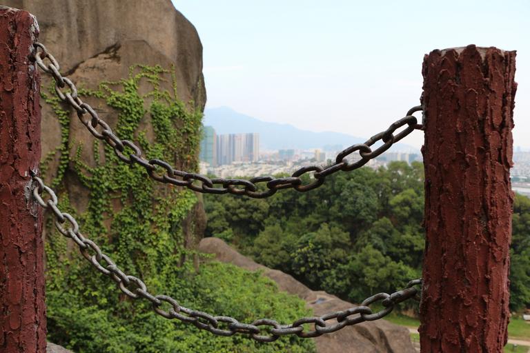 Keywords: the chains railing stone pillars