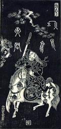 | Keywords: The Chinese general Guan Yu on horseback (5758877047).jpg en <b>Accession Number </b> 1957 73 <b>Display Artist </b> Nishimura Shigenaga <b>Display Title </b> The Chinese general Guan Yu on horseback <b>Translation s </b> Guan Yu <b>Creation Date </b> 1740-1750 <b>Medium </b> Woodblock <b>Height </b> 11 11/16 in <b>Width </b> 5 5/8 in <b>Display Dimensions </b> 11 11/16 in x 5 5/8 in 29 69 cm x 14 29 cm <b>Publisher </b> Nishimura Shigenaga <b>Credit Line </b> Bequest of Mrs Cora Timken Burnett <b>Label Copy </b> Number 165 Harmsworth catalog Guan Yu who died in 220 became deified as a god of righteousness in China following his martyrdom after loyally defending his emperor to the death His cult spread to Japan where his legend cohered well with samurai warrior ideals In a popular iconic image he rides his horse named Red Hare and holds his spear called the Green Dragon Crescent Blade White-on-black prints were intended to look like ink rubbings taken from an ancient Chinese stone carving <b>Collection </b> <a href http //www sdmart org/art/our-collection/asian-art rel nofollow >The San Diego Museum of Art</a> 2007-05-10 15 37 53 https //www flickr com/photos/thesandiegomuseumofartcollection/5758877047/ Flickr en thesandiegomuseumofartcollection PD-old-100 Files from the San Diego Museum of Art to be checked |
