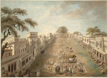 Keywords: The chowk and market-place at Kankhal, 1814.jpg artwork Institution British Library The chowk and market-place at Kankhal Haridwar 1814 http //www bl uk/onlinegallery/onlineex/apac/addorimss/t/019addor0004781u00000000 html British Library - The chowk and market-place at Kankhal 1814 1814 Johar Baig and Vikas Pradhan INDIA- Kankhal from the Original Watercolour of street view of Kankal from 'Views by Seeta Ram from Mohumdy to Gheen Vol V' produced for Lord Moira afterwards the Marquess of Hastings by Sita Ram between 1814-15 Marquess of Hastings the Governor-General of Bengal and the Commander-in-Chief r 1813-23 was accompanied by artist Sita Ram flourished c 1810-22 to illustrate his journey from Calcutta to Delhi between 1814-15 Kankal is a suburb of Haridwar on the Ganges river in Uttar Pradesh View of the chowk main street and market-place at Kankal surrounded by handsome buildings with a large gateway to the left Inscribed below 'Village of Kunkal ' British Library India Office paintings and furniture collection Historical images of Haridwar 1814 in India 1810s paintings from India Sita Ram |