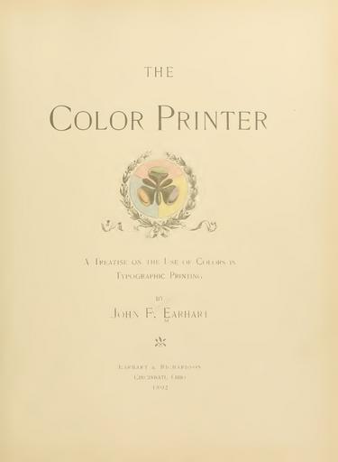 Keywords: text Public Domain Book: The color printer. A treatise on the use of colors in typographic printing. By John F. Earhart. Published 1892 by Earhart & Richardson in Cincinnati . Written in English. openlibrary.org/books/OL6969892M/The_color_printer. Public Domain Book: The color printer. A treatise on the use of colors in typographic printing. By John F. Earhart. Published 1892 by Earhart & Richardson in Cincinnati . Written in English. openlibrary.org/books/OL6969892M/The_color_printer. |