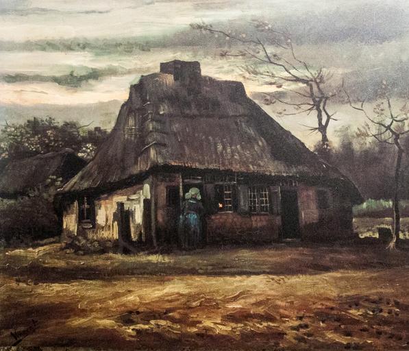 | Keywords: The Cottage - My Dream.jpg Artwork Creator Vincent van Gogh Parasztház sötétedéskor The Cottage House of local peasants in Nuenen the place where his parents lived and his father was a village pastor Having spent two lonely months in Drenthe in the north of the Netherlands Van Gogh moved to Nuenen in December 1983 The cottage in this painting accommodates two semi-detached dwellings It is partially made of daub and the roof is thatched This type of building was on the verge of disappearing from the countryside which is why Van Gogh chose to record it Nuenen 1885 Oil on canvas digital reconstruction Van Gogh Museum accession number object history credit line Photo by Szilas at the Van Gogh My Dream Exhibition in Budapest 2013 Commonist PD-old-100 DEFAULTSORT Van Gogh 1885-05 The Cottage Van Gogh Museum Van Gogh My Dream Exhibition The Cottage |
