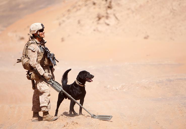 | Keywords: The Detectors (6989502030).jpg  You voted and winning by more than twice the votes this month's Corps Top Shot comes from Cpl Alfred V Lopez Lopez is currently deployed with Regimental Combat Team 5 --- Cpl Sean Grady a dog handler and pointman with Echo Company 1st Light Armored Reconnaissance Battalion and Ace an improvised explosive device detection dog pause for a break while sweeping a chokepoint during a patrol here April 27 2012 Grady a 27-year-old native of Otho Iowa and Ace have successfully located 16 IEDs the most of any team in their battalion since arriving in southern Helmand in October 2011 U S Marine Corps photo by Cpl Alfred V Lopez https //www flickr com/photos/marine_corps/6989502030/ The Detectors 2010-06-23 14 53 https //www flickr com/people/40927340 N03 Marines from Arlington VA United States PD-USGov United States Marine Corps Official Page https //flickr com/photos/40927340 N03/6989502030 2016-09-03 23 33 41 United States Government Work Helmand Province in the War in Afghanistan 2001-present 1st Light Armored Reconnaissance Battalion United States United States Marine Corps in the War in Afghanistan 2001-present Military working dogs in the War in Afghanistan 2001-present CEIA CMD |