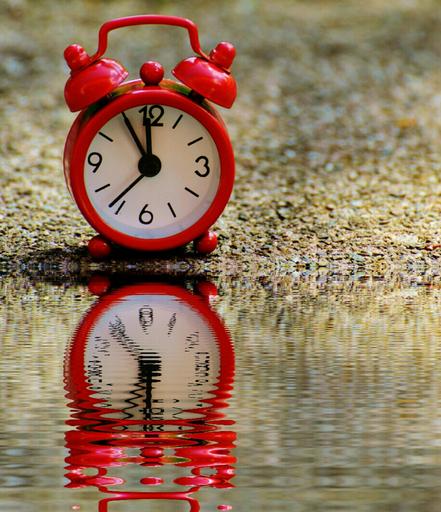 Keywords: the eleventh hour disaster alarm clock mirroring water bank clock ring the bell dial pointer hours time indicating time of time