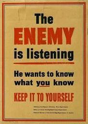 | Keywords: The enemy is listening.jpg The Enemy is listening He wants to know what you know Keep it to yourself http //www defendamerica mil 1942-1944 US Office of War Information US Federal Government - public domain PD-USGov World War II posters about secrecy from the United States World War II home front in the United States Listening Anti-rumor propaganda |