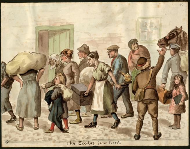| Keywords: university of victoria universityofvictoria uvic great britain. army. royal regiment of artillery greatbritainarmyroyalregimentofartillery caricatures and cartoons--20th century caricaturesandcartoons20thcentury notebooks war artists warartists world war, 1914-1918--pictorial works worldwar19141918pictorialworks world war, 1914-1918--caricatures and cartoons worldwar19141918caricaturesandcartoons people outdoor photo border Item is one of 123 pen-and-ink drawings and watercolours from two volumes titled: "Sketches of the War: France/Belgium". The sketches vary from satirical cartoons to more detailed and naturalistic renditions. They are often accompanied by an ironic title and are often signed with the artist's initials, "J.M." The artist's satirical targets include the officers and high command of both combatant sides; the disjuncture between reported and actual events, and the death of civilians as a fact of modern warfare. Item is one of 123 pen-and-ink drawings and watercolours from two volumes titled: "Sketches of the War: France/Belgium". The sketches vary from satirical cartoons to more detailed and naturalistic renditions. They are often accompanied by an ironic title and are often signed with the artist's initials, "J.M." The artist's satirical targets include the officers and high command of both combatant sides; the disjuncture between reported and actual events, and the death of civilians as a fact of modern warfare. |