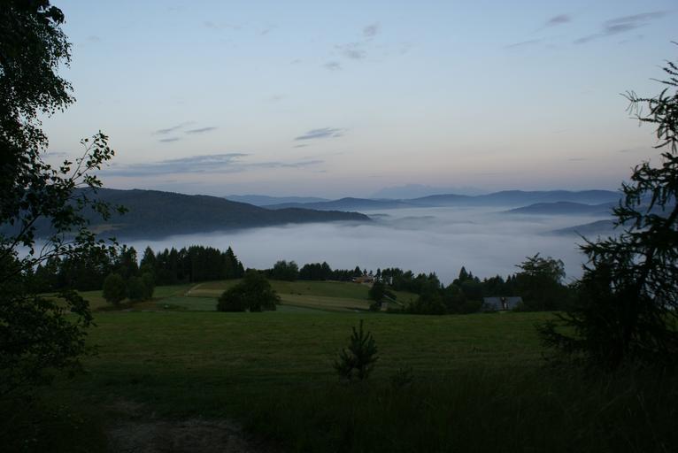 Keywords: the fog morning in the morning meadow mountains tatry muszyna sunrise landscape summer grass field nature climate dawn green clouds view polyana sky