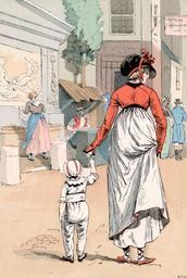 | Keywords: The Fountain in the rue du Regard, Year VII - 1799.jpg  Artwork This plate shows a woman in an Empire style dress typically made of white muslin These dresses were called 'chemises' and had an empire waist right below the bosom Women wore only light underwear underneath in contrast to the corsets and petticoats of earlier and later fashions This style was simple and showed more of the woman's natural body than older more formal styles The woman wears a simple cotton hat adorned with a ribbon reflective of a more democratic style worn by women at all levels of society and made more cheaply with the influx of cotton from British-ruled India La fontaine construite en 1807 est détruite en 1855 Le bas relief du sculpteur Achille Valois Léda métamorphosée en cygne est transféré à l'arrière de la fontaine Médicis et appelée désormais fontaine de Léda 1898 colored plate 10 x 15 cm Institution Brown University Library object history exhibition history credit line Published in Octave Uzanne Fashion in Paris the various phases of feminine taste and aesthetics from 1797 to 1897 London William Heinemann 1898 accession number 1145808246497316 PD-old 1799 in Paris 18th-century people of Paris Fashion in 1799 Images of Paris from the Brown University Library Les modes de Paris 005 People of France in 1799 Rue du Regard Paris Destroyed fountains in Paris Fontaine de Léda |