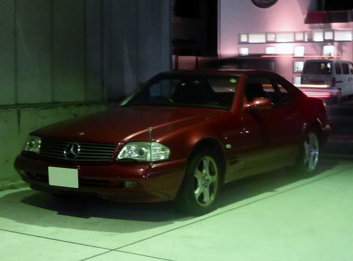 Keywords: The frontview of Mercedes-Benz SL500 (R129) at night.JPG ja R129型メルセデス・ベンツSL500を 間にフロントから撮影 2014-08-11 19 50 51 own Tokumeigakarinoaoshima 100px cc-zero Uploaded with UploadWizard Mercedes-Benz R129 Red roadsters
