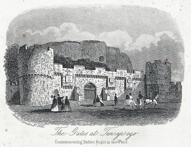 Keywords: The Gates at Tan-Yr-Ogo - Commemorating Battles fought in this Pass.jpeg Abstract Fortified gateway at Gwrych Castle showing people and a horse-drawn carriage Size mm 101 87 exhibition history Institution National Library of Wales Technique print engraving bw object history object type PD-old-70-1923 place of creation place of discovery 1133068 The Gates at Tan-Yr-Ogo Commemorating Battles fought in this Pass Uploaded with GWToolset The Gates at Tan-Yr-Ogo Commemorating Battles fought in this Pass http //dams llgc org uk/behaviour/llgc-id 1133068/fedora-bdef image/reference Images uploaded as part of NLW - WMUK collaboration Welsh Landscape Collection 1860s Gatehouses in Wales Carriages Coaches