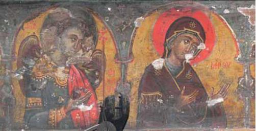 | Keywords: The Great Deesis, Leskoec 04.jpg en Fresco The Great Deesis in the Church of the Ascension of Jesus in Leskoec Macedonia mk Големиот Деисис ф еска во ц квата Св Спас во ох идското село Лескоец http //www kalamus com mk/pdf_spisanija/patrimonium_3/021 20- 2025 20Spisanie 202010 20VIKI 2005 20ok pdf Ох идско-ст ушки иконописни т аги од вто ата половина на 15 век author 1462 PD-Macedonia The Great Deesis Leskoec | ||||