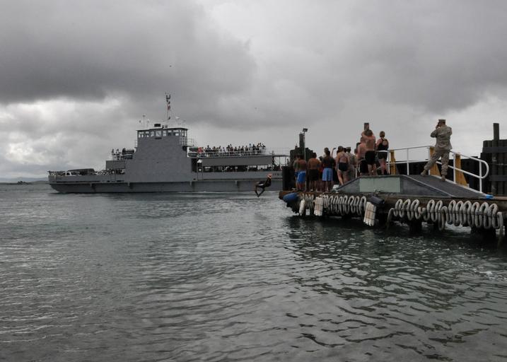 Keywords: The GTMO Jump Off DVIDS302399.jpg en Sailors Marines and civilians assigned to the Naval Station Guantanamo Bay Cuba perform the ˜GTMO Jump Off ™ while the base ferry gets underway Base residents perform the jump off to honor fellow service members and friends who are permanently leaving GTMO 2010-07-24 Chief Petty Officer Bill Mesta https //www dvidshub net/image/302399 100724-N-+++++-002 2010-07-24 14 45 NAVAL STATION GUANTANAMO BAY CUBA CU PD-USGov-Military-Navy Naval Station Guantanamo Bay Images from DoD uploaded by Fæ