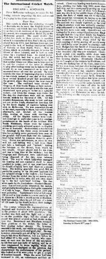 | Keywords: The International Cricket Match 1877.jpg en from the http //www nla gov au/ndp/ National Library Australian newspapers digitisation program which are pre-1955 so no copyright The service includes newspapers published in each state and territory from the 1800s to the mid-1950s when copyright applies Source http //www nla gov au/ndp/ National Library Australian newspapers digitisation program The Brisbane Courier 1877-03-24 PD-Australia National Library of Australia - Australian Newspapers Service Newspaper clippings about cricket Images from Brisbane Courier |