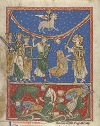 View Original:The_Lamb_Defeating_the_Ten_Kings,_about_1220_-_1235._Tempera_colors_and_gold_leaf_on_parchment,_The_J._Paul_Getty_Museum.jpg (6246x7873)