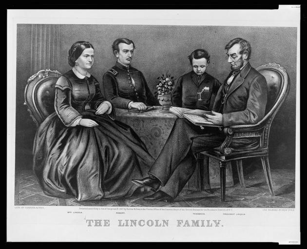 Keywords: The Lincoln Family, Currier & Ives.jpg Currier Ives lithograph of United States President Abraham Lincoln with his wife Mary Todd Lincoln and his sons Robert and Thaddeus Lincoln LOC-image cph 3c23759 1867 Currier Ives Engravings of Abraham Lincoln Currier and Ives Mary Todd Lincoln Robert Todd Lincoln Tad Lincoln PD-old |