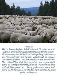 Keywords: god jesus jesus christ jesuschrist god the father godthefather holy spirit holyspirit holy church scripture angels faith prayer pray hope peace love alive forevermore aliveforevermore angel christian righteous king of kings kingofkings heaven archangel god is love godislove prince of peace princeofpeace creator christ the creator christthecreator god the creator godthecreator third heaven thirdheaven awesome alpha and omega alphaandomega wonderful glorious omnipotent almighty bible holy bible holybible armor of god armorofgod glorify hallelujah judgment judgment day judgmentday usa united states of america unitedstatesofamerica sleep christ who strengthens me christwhostrengthensme word of god wordofgod word of god stands forever wordofgodstandsforever shine like stars shinelikestars the lord is my shepherd thelordismyshepherd eternity confess christ confesschrist confess repent repentance humble sinner humble yourself humbleyourself saved lost found salvation praise god praisegod amen word became flesh wordbecameflesh be strong bestrong courage spiritual warfare spiritualwarfare spiritual warfare outdoor New King James Version (NKJV) The Lord the Shepherd of His People A Psalm of David. The Lord is my shepherd; I shall not want. He makes me to lie down in green pastures; He leads me beside the still waters. He restores my soul; He leads me in the paths of righteousness For His name’s sake. Yea, though I walk through the valley of the shadow of death, I will fear no evil; For You are with me; Your rod and Your staff, they comfort me. You prepare a table before me in the presence of my enemies; You anoint my head with oil; My cup runs over. Surely goodness and mercy shall follow me All the days of my life; And I will dwell in the house of the Lord Forever. Romans 8:28 New King James Version (NKJV) And we know that all things work together for good to those who love God, to those who are the called according to His purpose. New King James Version (NKJV) The Lord the Shepherd of His People A Psalm of David. The Lord is my shepherd; I shall not want. He makes me to lie down in green pastures; He leads me beside the still waters. He restores my soul; He leads me in the paths of righteousness For His name’s sake. Yea, though I walk through the valley of the shadow of death, I will fear no evil; For You are with me; Your rod and Your staff, they comfort me. You prepare a table before me in the presence of my enemies; You anoint my head with oil; My cup runs over. Surely goodness and mercy shall follow me All the days of my life; And I will dwell in the house of the Lord Forever. Romans 8:28 New King James Version (NKJV) And we know that all things work together for good to those who love God, to those who are the called according to His purpose. |