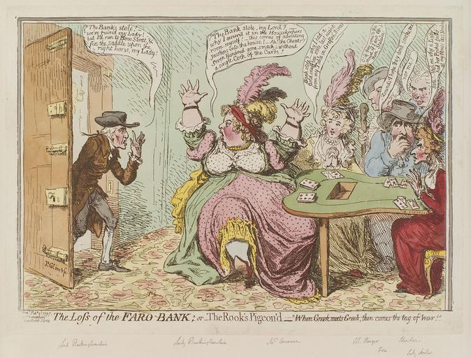 | Keywords: The loss of the faro bank; or - the rook's pigeon'd by James Gillray.jpg The loss of the faro bank; or - the rook's pigeon'd by James Gillray died 1815 published 1797 See source website for additional information This set of images was gathered by User Dcoetzee from the National Portrait Gallery London website using a special tool All images in this batch have been confirmed as author died before 1939 according to the official death date listed by the NPG D12595 1797 James Gillray died 1815 PD-old-100 National Portrait Gallery London James Gillray |