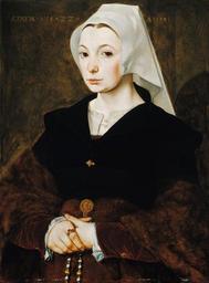 Keywords: The Master of the 1540s - Portrait of a young woman - Google Art Project.jpg Google Art Project Q20487982 creator Master of the 1540s 1541 technique oil oak panel cm 59 5 44 9 0 15th “19th c European art Gift of James Fairfax AC 1993 oil on panel James Oswald Fairfax AC Australia b 1933 1982-31 Aug 1993 Bowral/New South Wales/Australia Gift of James Fairfax 1993 Purchased by James Fairfax from Artneys International Ltd 1982<br />Artneys International Ltd 1982 by 1982 Sold to James Fairfax 1982<br />Cramer Netherlands 1976-1977 The Hague/Netherlands dealer<br />H Becker circa 1967 by 1967 listed in 'Sammlung Becker I gemälde alter meister / bearbeitung des kataloges' by Rolf Fritz Dortmund 1967 as collection of H Becker <br />Dr Hans Wetzlar Netherlands d 1977 Amsterdam/Netherlands after 1952 and by 1953 not listed in Max J Friedlander 'Collection Dr H Wetzlar' Amsterdam 1952 Lent to the exhibition 'Le portrait dans les Pays-Bas' Musée Communal Bruges 1953 Signature_ _Date Not signed Dated u r oil 1541 special url_id aQHkEMDmyGzrXQ PD-old-100 DEFAULTSORT Master of the 1540s Portrait female Art Gallery of New South Wales Master of the 1540s Art Gallery of New South Wales - European art Google Art Project works by Master of the 1540s 1540s portrait paintings 16th-century portrait paintings of women 16th-century women looking at viewer in art 1541 paintings Oil paintings of women Paintings in the Art Gallery of New South Wales Master Of The 1540s Paintings with years of production artist |