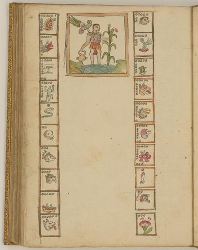 | Keywords: The Months of the Aztec Tonalpohualli (Day Count) Calendar WDL6734.png Artwork ru Това Хуан де около 1546 г около 1626 г fr Tovar Jean de 1546-1626 env en Tovar Juan de circa 1546-circa 1626 zh 胡安·德·托瓦尔,约 1546 年 - 约 1626 年 pt Tovar Juan de por volta de 1546-por volta de 1626 ar خوان دو توفار، حوالي 1546-حوالي 1626 es Tovar Juan de circa 1546-circa 1626 ru есяцы ацтекского календа я тональпоуалли счет дней fr Les mois du calendrier Tonalpohualli nombre de jours aztèque en The Months of the Aztec Tonalpohualli Day Count Calendar zh 阿兹特克神 历的 份 pt Os meses do calendário asteca Tonalpohualli contagem dos dias ar شهور تقويم التونالبوالي عد الأيام الخاص بالأزتك ru Кодекс Това а авто ом кото ого считается мексиканский иезуит XVI века Хуан де Това соде жит под обную инфо мацию об об ядах и це емониях ацтеков известных также как мешика Кодекс п оиллюст и ован 51 аква ельным исунком на полную ст аницу Рисунки в кото ых наблюдается значительное влияние пиктог афических укописей доколониальных в емен обладают исключительными художественными достоинствами Рукопись состоит из т ех азделов В пе вом азделе описана исто ия путешествий ацтеков до п ибытия испанцев Вто ой аздел п едставляет собой иллюст и ованную исто ию ацтеков В т етьем азделе находится календа ь Това а в кото ом п ослеживается календа ный цикл ацтеков с месяцами неделями днями воск есными буквами и елигиозными п аздниками х истианского 365-дневного года а этой иллюст ации из т етьего аздела п едставлен один месяц ацтеков с указанием названия каждого дня месяца В ве хней части исунка изоб ажен мужчина с то сом пок ытым ыбьей чешуей с плюмажем из пе ьев птицы кетцаль он стоит в воде и де жит стебель маиса и сосуд Ацтеки использовали два календа я для исчисления дней в году Шиупоуалли пе вый или солнечный календа ь состоял из 365 дней азделенных на 18 месяцев по 20 дней в каждом плюс дополнительные пять пустых дней в конце года Тональпоуалли вто ой календа ь счет дней состоял из 260 дней кото ые п едставляли собой сочетание 13 чисел и 20 символов Циклы обоих календа ей совпадали аз в 52 года Ве оятно на иллюст ации изоб ажен шестой месяц эцалькуалистли блюдо из маиса и фасоли <br>Календа ь ацтеков; Ацтеки; Календа и; Кодекс; Индейцы ексики; Ко енные на одности; езоаме ика; Кодекс Това а fr Le codex Tovar attribué à Jean de Tovar jésuite mexicain du XVI<sup>e</sup> siècle contient des informations détaillées sur les rites et les cérémonies des Aztèques également connus sous le nom de Mexicas Il est illustré de 51 aquarelles de la taille d'une page Fortement influencées par les manuscrits pictographiques de la période précontact ces peintures sont d'une qualité artistique exceptionnelle Le manuscrit est divisé en trois sections La première section contient une histoire des voyages des Aztèques avant l'arrivée des Espagnols La deuxième section est une histoire illustrée des Aztèques Dans la troisième section le calendrier de Tovar transcrit un calendrier aztèque continu avec les mois les semaines les jours les lettres dominicales et les fêtes liturgiques d'une année chrétienne de 365 jours Cette illustration extraite de la troisième section montre un mois aztèque indiquant le nom de chacun de ses jours La partie supérieure contient l'image d'un homme avec un torse en écailles de poisson et un panache de plumes de quetzal Il est représenté debout les pieds dans l'eau et tenant une tige de maïs et un récipient Les Aztèques utilisaient deux calendriers pour calculer les jours de l'année Comportant 365 jours Xiuhpohualli premier calendrier également appelé solaire était divisé en 18 mois de 20 jours chacun plus une période supplémentaire de cinq jours épagomènes à la fin de l'année Tonalpohualli second calendrier également appelé « nombre de jours » était constitué de 260 jours combinant 13 nombres et 20 symboles Tous les 52 ans ces deux calendriers concordaient L'image illustre probablement le sixième mois Etzalcualiztli repas de maïs et de haricots <br>Calendrier aztèque; Aztèques; Calendriers; Codex; Indiens du Mexique; Peuples autochtones; Méso-Amérique; Codex Tovar en The Tovar Codex attributed to the 16th-century Mexican Jesuit Juan de Tovar contains detailed information about the rites and ceremonies of the Aztecs also known as Mexica The codex is illustrated with 51 full-page paintings in watercolor Strongly influenced by pre-contact pictographic manuscripts the paintings are of exceptional artistic quality The manuscript is divided into