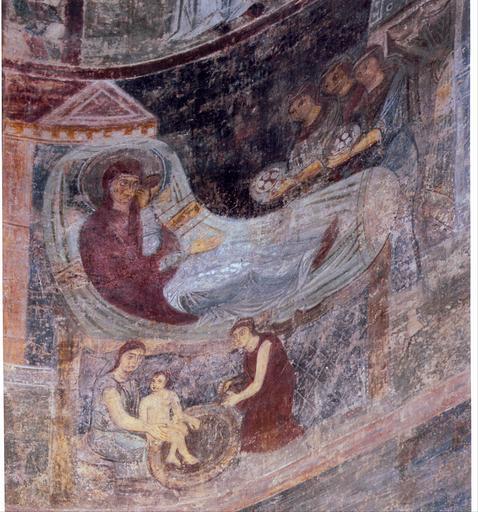 | Keywords: The Nativity of the Virgin - Google Art Project.jpg commons date commons medium commons dimensions commons institution commons location commons references commons object_history commons exhibition_history commons credit_line commons inscriptions commons notes commons accession_number commons source commons permission commons other_versions commons zoom core title The most laconic iconographic version with minimum of characters was chosen for this fresco In the center of the composition there is a bed with birthing mother Three women congratulate Anna and bring her presents In the lower part near the bed there are two midwives bathing a baby “ Mary The scene combines the naturalness of genre scene and ritual iconography of Byzantine art core creator Unknown core date dateCreated 1000 core type monumental painting fresco google display_date 1000 google is_artproject TRUE google is_gigapixel FALSE google is_secured TRUE google partner/id 000000000804b21e google picasa_token QY8aN3B9J7oCzGQOe3HFhy6u2wM special url_id OQFn0GWJCA8Ktg google partner/name St Sophia of Kyiv special partner/name_no_lang St Sophia of Kyiv PD-old-100-1923 Google Art Project works by unknown artist Saint Sophia Cathedral frescos Frescos of Birth of Mary |