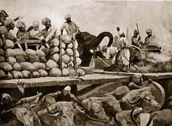 Keywords: The Nawab's artillery at Plassey.jpg artwork en Battle of Plassey 23rd June 1757; Decisive British East India Company victory over the Nawab of Bengal and his French allies establishing Company rule in India; 1923 373554 creator Richard Caton Woodville Jr lithograph Private collection credit line The Stapleton Collection http //images2 bridgemanart com/cgi-bin/bridgemanImage cgi/2000 STC 3376730 7055475/373554 jpg 2000px file PD-old-auto-1923 1927 DEFAULTSORT Navab's artillery on a special movable platform Works by Richard Caton Woodville Jr ILN 1893 1893 in Hyderabad India Soldiers of India in art Hyderabad Contingent Elephant riding in art of India Cannons in Hyderabad India Cattle in art of India Carts in Andhra Pradesh Military history of Andhra Pradesh War elephants of India Uploaded with UploadWizard People with elephants in Andhra Pradesh |