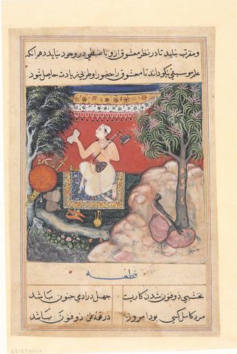 | Keywords: The Origin of Music Page from a tutinama Manuscript.jpg The Iranian legend of the mythical bird the Mausiqar which provides the seven notes that are said to comprise the origin of music is the inspiration for this composition The bird that serves as the musician ™s muse almost goes unnoticed while attention focuses on the vina player seated on a beautiful rug This work aspires to invoke aesthetic pleasure rasa and music is deemed a means to stimulate love What enchantment was hidden in last night ™s potion I lost my head but it was not a drunken sensation The reworking of this painting recently has been attributed by John Seyller to the young Basawan the Iranian painter recruited to Akbar ™s atelier who became Akbar ™s personal favorite Basawan ™s participation in this project was first identified by Pramod Chandra in 1976 That the Tutinama was Mughalized during the period the Hamzanama was in production is witnessed by the treatment of such signature motifs as the shield sword and bow as well as the quiver hung on a tree a device directly repeated in a number of Hamzanama paintings About the Artist Basawan Active ca 1556 “1600 at the Mughal court; father of Manohar Basawan joined Akbar ™s atelier at Delhi as a young Hindu recruit and was involved in every major manuscript production throughout his emperor ™s reign Abu ™l Fazl recorded that Basawan surpassed all in composition drawing of features distribution of colors and portrait painting and was even preferred by some to the first master of the age Daswanth The mature Akbar prized Basawan above all others for his gift of faithful representation and also for advancing the Mughal style He was a pioneer in responding to and absorbing new pictorial devices from European art; naturalistic portraiture atmospheric perspective and a painterly approach to landscape are his hallmarks Basawan was already an accomplished painter in the early 1560s when he participated in the Mughal reworking of the Tutinama manuscript The Origin of Music demonstrates his talent for portraiture and his ability to render rocks and trees with a naturalism not seen before in subcontinental painting In addition Basawan was a key contributor to the monumental Hamzanama series as a painter of portraits rocks and trees and also as a master of composition In the folio that portrays a night attack on the camp of Malik Iraj Basawan ™s hand is visible in the rock formations and the densely foliated trees as a comparison with those motifs in his Khamsa of Amir Khusrow Dihlavi page clearly demonstrates The composition of this Hamzanama folio has an underlying similarity to an ascribed work by Basawan in the Victoria and Albert ™s Akbarnama that shows Akbar witnessing the armed combat of Hindu ascetics made some twenty years later Basawan ™s most lasting legacy is the response to European art that he brought to Mughal painting His ability to grasp the pictorial possibilities of both atmospheric and linear perspective was unmatched His paintings of the later 1590s are a revolutionary fusion of these European pictorial devices into a newly emerging post-Safavid Mughal style The vain dervish from an imperial copy of the Baharistan dated 1595 displays Basawan ™s gift for theatricality combined with an astonishing ability to capture naturalistic detail as witnessed in every aspect of this masterpiece from the figures in conversation to the goats and peacocks that inhabit the setting Basawan routinely used his signature rocks and trees to create receding intercepting spaces in the European mode Like all imperial painters of his time he had access at the court to northern European engravings of Christian subjects and cameo-type portraits and he drew freely on that imagery Basawan typically placed his European-inspired figures in a visionary Mughal setting with fantastic rock formations of Iranian derivation ca 1565 “70 http //www metmuseum org/Collections/search-the-collections/60050334 rpp 20 pg 1 ft akbar pos 8 Attributed to Basawan Indian active ca 1556 “1600 PD-Art Uploaded with UploadWizard Tutinama |