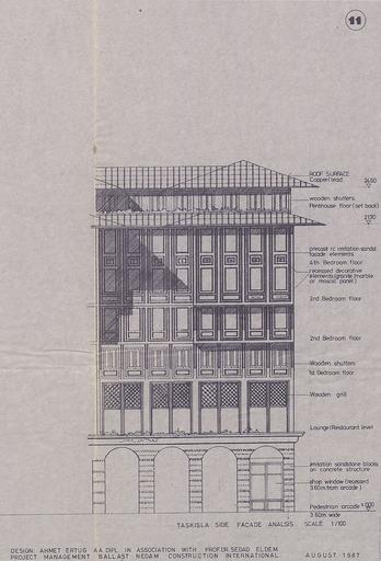 | Keywords: salt araştırma saltaraştırma salt research saltresearch salt online saltonline plaza oteli plazaoteli tenis eskrim ve dağcılık kulübü teniseskrimvedağcılıkkulübü ted ted kulübü tedkulübü grand hyatt oteli grandhyattoteli the plaza hotel theplazahotel hyatt regency hyattregency hyatt bedrettin dalan bedrettindalan sedad hakkı eldem sedadhakkıeldem ahmet ertuğ ahmetertuğ mimari proje mimariproje proje cephe architectural project architecturalproject project facade mimari architectural taksim i̇stanbul istanbul text drawing writing sketch outdoor www.archives.saltresearch.org/R/4DLP49H2CV2BYK4TEL7UFDSV7... The Plaza Hotel, which was designed by Sedad Hakkı Eldem and Ahmet Ertuğ, was built between 1985-87 on land that was formerly occupied by the Tennis, Fencing and Mountaineering Club (TED). The hotel was proposed by Bedrettin Dalan who had supplied the order for TED to be demolished during his term as mayor of İstanbul. The Plaza Hotel was designed in stark contrast to the more prevelant architecture styles of the period. It consists of modernist lines featured across curtain walls, but also comprises “Turkish House” details, which were manifestated by Sedad Hakkı Eldem himself. The Grand Hyatt Hotel from 1993, located in the same area, shares a similar architectural language with Eldem and Ertuğ’s design. SALT Araştırma&Rahmi Koç Archive, Sedad Hakkı Eldem Archive Bedrettin Dalan’ın İstanbul belediye başkanlığı döneminde imara açılan Tenis Eskrim ve Dağcılık Kulübü arazisine yapılacak otel için geliştirilen önerilerden biri Plaza Oteli’dir. 1985-1987 yıllarında Sedad Hakkı Eldem ve Ahmet Ertuğ ortaklığında tasarlanan otel, dönem mimarlığının giydirme cephe sistemli modüler tasarım akımına zıtlık teşkil eder. Masif tek bir kütle şeklinde önerilen Plaza Oteli, detaylarda, Eldem’in manifestolaştırdığı “Türk Evi” karakteristikleri barındırır. 1993’te inşası tamamlanan ve hâlen aynı arazide yer alan Grand Hyatt Oteli, biçimsel bağlamda Eldem-Ertuğ tasarımıyla aynı dili konuşmaktadır. SALT Araştırma&Rahmi Koç Arşivi, Sedad Hakkı Eldem Arşivi www.archives.saltresearch.org/R/4DLP49H2CV2BYK4TEL7UFDSV7... The Plaza Hotel, which was designed by Sedad Hakkı Eldem and Ahmet Ertuğ, was built between 1985-87 on land that was formerly occupied by the Tennis, Fencing and Mountaineering Club (TED). The hotel was proposed by Bedrettin Dalan who had supplied the order for TED to be demolished during his term as mayor of İstanbul. The Plaza Hotel was designed in stark contrast to the more prevelant architecture styles of the period. It consists of modernist lines featured across curtain walls, but also comprises “Turkish House” details, which were manifestated by Sedad Hakkı Eldem himself. The Grand Hyatt Hotel from 1993, located in the same area, shares a similar architectural language with Eldem and Ertuğ’s design. SALT Araştırma&Rahmi Koç Archive, Sedad Hakkı Eldem Archive Bedrettin Dalan’ın İstanbul belediye başkanlığı döneminde imara açılan Tenis Eskrim ve Dağcılık Kulübü arazisine yapılacak otel için geliştirilen önerilerden biri Plaza Oteli’dir. 1985-1987 yıllarında Sedad Hakkı Eldem ve Ahmet Ertuğ ortaklığında tasarlanan otel, dönem mimarlığının giydirme cephe sistemli modüler tasarım akımına zıtlık teşkil eder. Masif tek bir kütle şeklinde önerilen Plaza Oteli, detaylarda, Eldem’in manifestolaştırdığı “Türk Evi” karakteristikleri barındırır. 1993’te inşası tamamlanan ve hâlen aynı arazide yer alan Grand Hyatt Oteli, biçimsel bağlamda Eldem-Ertuğ tasarımıyla aynı dili konuşmaktadır. SALT Araştırma&Rahmi Koç Arşivi, Sedad Hakkı Eldem Arşivi |