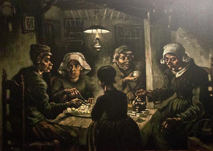 Keywords: The Potato Eaters - My Dream.jpg Artwork Creator Vincent van Gogh Krunplievők The Potato Eaters Nuenen 1885 04 Oil on canvas digital reconstruction cm 81 5 114 5 Van Gogh Museum accession number object history credit line Van Gogh catalogues 82 764 Photo by Szilas at the Van Gogh My Dream Exhibition in Budapest 2013 Commonist PD-old-100 Van Gogh My Dream Exhibition The Potato Eaters