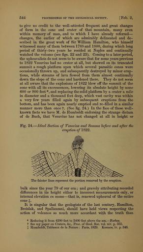 Keywords: The Quarterly journal of the Geological Society of London (12981082605).jpg 544 <br> PKOCEEDINGS OF THE GEOLOGICAL SOCIETY <br> Feb 2 <br> to give no credit to the well-attested frequent and great changes <br> of form in the cone and crater of that mountain many even <br> within memory of man and to which I have already referred ” <br> changes the earlier of which are admirably delineated and de- <br> scribed in the great work of Sir William Hamilton who himself <br> witnessed many of them between 1768 and 1800 during which long <br> period of thirty-two years he resided at Naples and continually <br> watched the volcano see figs 22 and 23 Coming to a later period <br> the upheavalists do not seem to be aware that for some years previous <br> to 1822 Yesuvius had no crater at all but showed on its truncated <br> summit a rough platform upon which several parasitic cones were <br> occasionally thrown up and subsequently destroyed by minor erup- <br> tions while streams of lava flowed from them almost continually <br> down the slope of the cone and hardened there They do not seem <br> at all aware that the explosions of 1822 blew off the summit of the <br> cone with aU its excrescences lowering its absolute height by some <br> 600 or 800 feet and replacing the solid platform by a crater a mile <br> in diameter and a thousand feet deep which vast cavity was Tvithin <br> a very few years filled again by subsequent eruptions from the <br> bottom and has been again nearly emptied and re -filled in a similar <br> manner more than once f See fig 24 In the face of these well- <br> known facts we have M de Humboldt endorsing the strange dictum <br> of de Buch that Yesuvius has not changed at all in height or <br> Fig 24 ” Ideal Section of Vesuvius and Somma before and after the <br> eruption of 1822 <br> The fainter lines represent the portion removed by the eruption <br> bulk since the year 79 of our era ; and gravely attributing recorded <br> differences in its height either to incorrect measurements only or <br> internal elevation en masse ” that is renewed upheaval of the entire <br> cone i <br> It is singular that the geologists of the last century Hamilton <br> Breislak and Spallanzani should have held views respecting the <br> action of volcanos so much more accordant with the truth than <br> Reducing it from 4200 feet to 3400 feet above the sea ” Forbes <br> t See mj paper on Craters c Proc of Greol Soc vol xiv p 335 <br> - - -- Kosmos iv p 346 <br> I Humboldt Tableaux de la Nature Paris 1829 36162111 111474 51125 Page 544 Text v 15 http //www biodiversitylibrary org/page/36162111 1859 Geological Society of London NameFound Vesuvius NameFound Yesuvius Biodiversity Heritage Library The Quarterly journal of the Geological Society of London v 15 1859 Geology Periodicals Smithsonian Libraries bhl page 36162111 dc identifier http //biodiversitylibrary org/page/36162111 smithsonian libraries Information field Flickr posted date ISOdate 2014-03-07 Check categories 2015 August 26 CC-BY-2 0 BioDivLibrary https //flickr com/photos/61021753 N02/12981082605 2015-08-26 14 55 01 cc-by-2 0 PD-old-70-1923 The Quarterly journal of the Geological Society of London 1859 Photos uploaded from Flickr by FĂŚ using a script