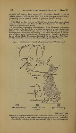 Keywords: The Quarterly journal of the Geological Society of London (12961674864).jpg 408 <br> PEOCEEDIl GS OF THE GEOLOGICAL SOCIETY Juno 23 <br> deposits had scarcely been suggested the author thought it best to <br> remain ignorant of what had been said about this particular locality <br> previously to his making a series of personal observations f <br> Mr Hull has lately worked out this division in some of the more inland <br> districts of Lancashire See Mem Lit Phil Soc Manchester for 1863-64 and <br> Memoirs of the Geological Survey <br> t Since making observations on the Blackpool drifts I have seen perhaps the <br> finest section of the three drifts in vertical succession to be met with in south <br> Britain It is about 1 50 feet high and embraces Lower Boulder-clay middle <br> sand and gravel and Upper Boulder-clay The drifts are exposed in a river- <br> cliff at Kedscar about three miles north-east of Preston They will be described <br> in one of Mr Hull's forthcoming Geological Survey Memoirs The Lower <br> Boulder-clay is here much less stony than at Blackpool and in Furness <br> Pig 1 ” STcetch-map of parts of Lancashire and Cumberland <br> SlaelcpooJ <br> T haiTV <br> JBTorecanLbe / j <br> jEtQSsdM <br> S r 'ft <br> B 3 <br> Lower Boulder-clay <br> Middle Sand and <br> Gravel <br> Upper Boulder-clay <br> EXPLANATION <br> The Maps of north-west Lancashire and part of Cumberland are intended to give <br> are either driftless or they have not been examined by the author In Furness <br> believed to be equivalent to the more decided drift of the neighbourhood 36103283 111288 51125 Page 408 Text v 25 http //www biodiversitylibrary org/page/36103283 1869 Geological Society of London Biodiversity Heritage Library The Quarterly journal of the Geological Society of London v 25 1869 Geology Periodicals Smithsonian Libraries bhl page 36103283 dc identifier http //biodiversitylibrary org/page/36103283 smithsonian libraries Information field Flickr posted date ISOdate 2014-03-06 Check categories 2015 August 26 CC-BY-2 0 BioDivLibrary https //flickr com/photos/61021753 N02/12961674864 2015-08-26 14 56 41 cc-by-2 0 PD-old-70-1923 The Quarterly journal of the Geological Society of London 1869 Photos uploaded from Flickr by Fæ using a script |