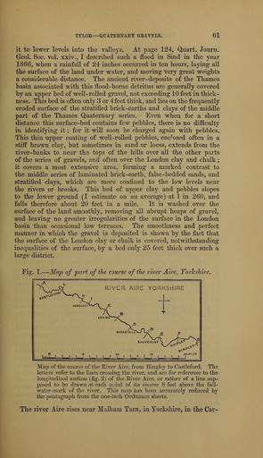 | Keywords: The Quarterly journal of the Geological Society of London (12961444804).jpg TTLOE QTJATEBN-AEY aElVELS <br> 61 <br> it to lower levels into the valleys At page 124 Quart Jonrn <br> Geol Soc vol xxiv I described snch a flood in Sind in the year <br> 1866 when a rainfall of 24 inches occurred in ten honrs laying all <br> the surface of the land under water and moving very great weights <br> a considerable distance The ancient river- deposits of the Thames <br> basin associated with this flood-borne detritus are generally covered <br> by an upper bed of well-rolled gravel not exceeding 10 feet in thick- <br> ness This bed is often only 3 or 4feet thick and lies on the frequently <br> eroded surface of the stratified brick-earths and clays of the middle <br> part of the Thames Quaternary series Even when for a short <br> distance this surface-bed contains few pebbles there is no difficulty <br> in identifying it ; for it will soon be charged again with pebbles <br> This thin upper coating of well-rolled pebbles enc ' osed often in a <br> stiff brown clay but sometimes in sand or loess extends from the <br> river-banks to near the tops of the hills over all the other parts <br> of the series of gravels and often over the London clay and chalk ; <br> it covers a most extensive area forming a marked contrast to <br> the middle series of laminated brick-earth false-bedded sands and <br> stratified clays which are more confined to the low levels near <br> the rivers or brooks This bed of upper clay and pebbles slopes <br> to the lower ground I estimate on an average at I in 260 and <br> falls therefore about 20 feet in a mile It is washed over the <br> surface of the land smoothly removing all abrupt heaps of gravel <br> and leaving no greater irregularities of the surface in the London <br> basin than occasional low terraces The smoothness and perfect <br> manner in wliich the gravel is deposited is shown by the fact that <br> the surface of the London clay or chalk is covered notwithstanding <br> inequalities of the surface by a bed only 25 feet thick over such a <br> laro-e district <br> Fig 1 Map of part of the course of the river Aire Yorlcshire <br> RIVER AIRE YORKSHIRE <br> Map of the course of the E-iver Aire from Bindley to Castleford The <br> letters refer to the hnes crossing the river and are for refei ence to the <br> longitudinal section fig 2 of the River Aire or rather of a line sup- <br> posed to be drawn at each point of its course 8 feet above the full- <br> water-mark of tli3 river This map has been accurately reduced by <br> the pentagraph from the one-inch Ordnance sheets <br> The river Aire rises near Malham Tarn in Yorkshire in the Car- 36102906 111288 51125 Page 61 Text v 25 http //www biodiversitylibrary org/page/36102906 1869 Geological Society of London Biodiversity Heritage Library The Quarterly journal of the Geological Society of London v 25 1869 Geology Periodicals Smithsonian Libraries bhl page 36102906 dc identifier http //biodiversitylibrary org/page/36102906 smithsonian libraries Information field Flickr posted date ISOdate 2014-03-06 Check categories 2015 August 26 CC-BY-2 0 BioDivLibrary https //flickr com/photos/61021753 N02/12961444804 2015-08-26 15 51 53 cc-by-2 0 PD-old-70-1923 The Quarterly journal of the Geological Society of London 1869 Photos uploaded from Flickr by FĂŚ using a script |