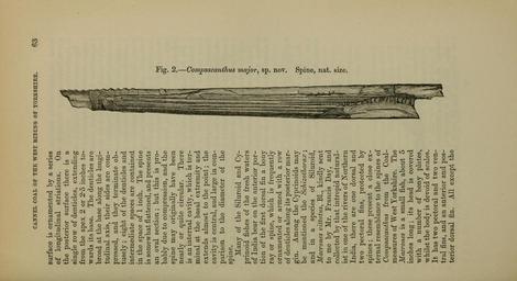 | Keywords: The Quarterly journal of the Geological Society of London (12960135993).jpg CANCEL COAL OF THE WEST EIDI s G OP YOBKSHIBE <br> 63 <br> surface is ornamented by a series <br> of longitudinal striations On <br> the posterior surface there is a <br> single row of denticles extending <br> from the apex 2 or 2-5 inches to- <br> wards its base The denticles are <br> broad at the base along the longi- <br> tudinal axis their sides are com- <br> pressed and they terminate ob- <br> tusely ; eight of the denticles and <br> intermediate spaces are contained <br> in the space of 1 inch The spine <br> is somewhat flattened and presents <br> an oval section ; but this is pro- <br> bably due to compression and the <br> spine may originally have been <br> nearly or quite circular There <br> is an internal cavity which is ter- <br> minal at the basal extremity and <br> extends almost to the point ; the <br> cavity is central and large in com- <br> parison to the diameter of the <br> spine <br> Many of the Siluroid and Cy- <br> prinoid fishes of the fresh waters <br> of India bear on the anterior por- <br> tion of the first dorsal fin a bony <br> ray or spine which is frequently <br> ornamented or armed with a row <br> of denticles along its posterior mar- <br> gin Among the Cyprinoids may <br> be mentioned the Scliizotliorax ; <br> and in a species of Siluroid <br> Macrones vittatus Bl kindly sent <br> to me by Mr Francis Day and <br> collected by that intrei3id natural- <br> ist in one of the rivers of Northern <br> India there are one dorsal and <br> two pectoral fins protected by <br> sjjines ; these present a close ex- <br> ternal resemblance to the spines of <br> Compsacanthus from the Coal- <br> measures of West Yorkshire The <br> Macrones is a small fish about 5 <br> inches long ; its head is covered <br> with a number of bony plates <br> whilst the body is devoid of scales <br> It has two pectoral and two ven- <br> tral fins and an anterior and pos- <br> terior dorsal fin All except the <br> to <br> g <br> 2 <br> 36090398 111264 51125 Page 63 Text 36 http //www biodiversitylibrary org/page/36090398 1880 Geological Society of London NameFound Compsacanthus NameConfirmed Compsacanthus NameBankID 4122934 NameFound Macrones NameConfirmed Macrones EOLID 13213 NameBankID 177531 NameFound Macrones vittatus NameConfirmed Macrones vittatus Bloch 1794 EOLID 219251 NameBankID 160448 Biodiversity Heritage Library The Quarterly journal of the Geological Society of London v 36 1880 Geology Periodicals Smithsonian Libraries bhl page 36090398 dc identifier http //biodiversitylibrary org/page/36090398 smithsonian libraries Information field Flickr posted date ISOdate 2014-03-06 Check categories 2015 August 26 CC-BY-2 0 BioDivLibrary https //flickr com/photos/61021753 N02/12960135993 2015-08-26 16 54 04 cc-by-2 0 PD-old-70-1923 The Quarterly journal of the Geological Society of London 1880 Photos uploaded from Flickr by Fæ using a script |