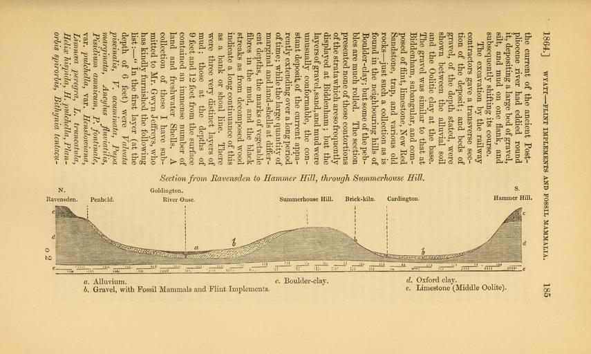 MAKE A MEME View Large Image The Quarterly journal of the Geological Society of London (12894882215).jpg 1864 <br> WYATT FLINT IMPLEMENTS AND FOSSIL MAMMALIA <br> 185 <br> the current of the ancient Post- <br> pliocene river had eddied round <br> it depositing a large ...